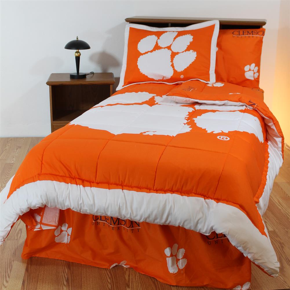 CVL1907: Features: -All items are 100pct cotton sateen-200 Thread count for a softer feel than any other collegiate bedding available-Twin size sets come with one sham, full, queen and king size sets come with two shams-Sheets, pillow case and bed skirt are printed with the same all over pattern as back of comforter-Comforter has the University logo printed large on front with an all over logo pattern printed on the back giving you a truly reversible comforter with two unique looks. Includes: -Includes a reversible comforter, logo patterned team color sheet set, printed bed skirt and sham. Options: -Available in Twin, Full, Queen and King sizes. Color/Finish: -Official several team colors and logos. Dimensions: -Twin dimensions: 86" H x 66" W-Full dimensions: 90" H x 80" W-Queen dimensions: 96" H x 86" W-King dimensions: 96" H x 100" W.